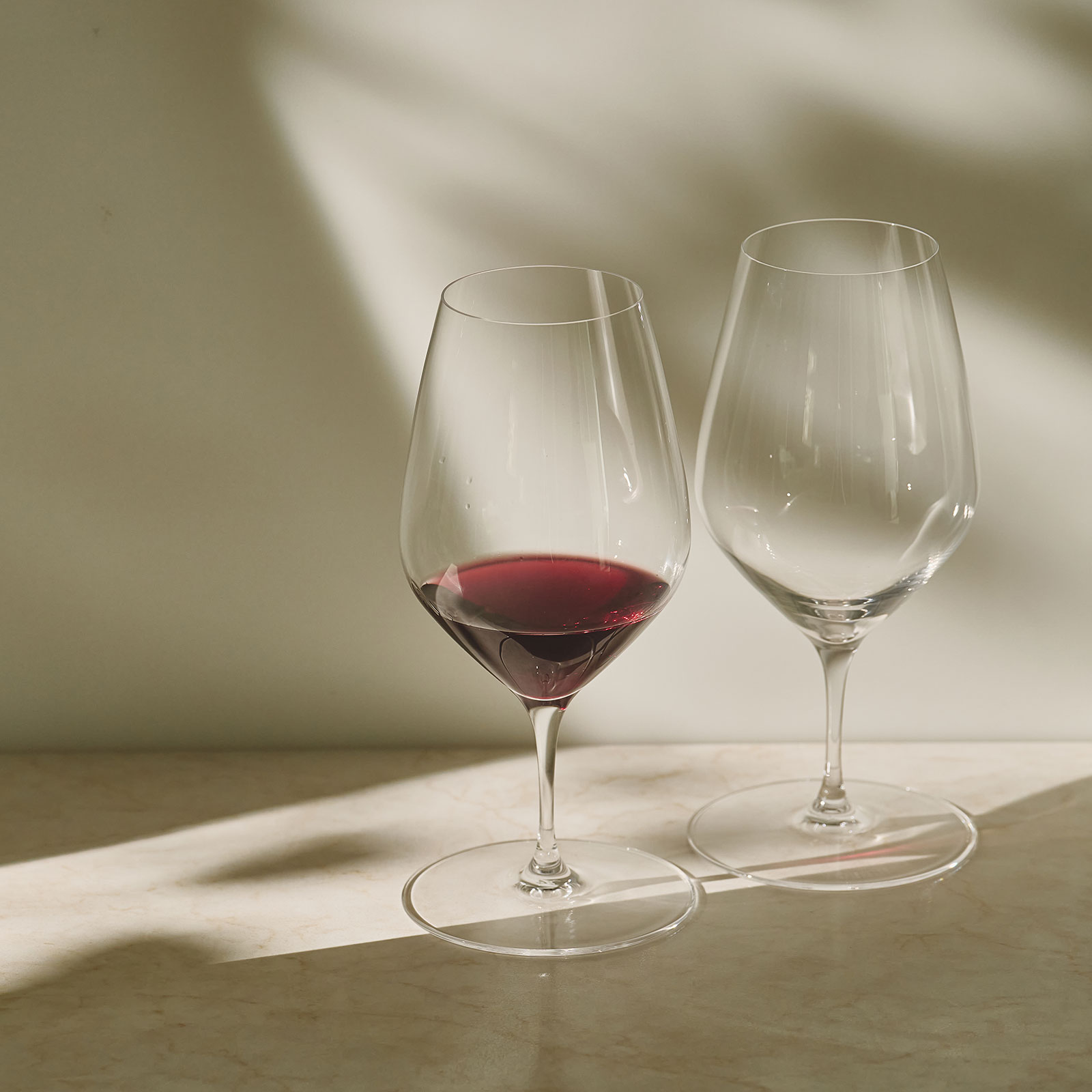 赤ワインの芳醇な香りをしっかりと受け止める、大きなボウルとすぼまった形状です。モダンなダイヤモンドシェイプが空気との接触面を広げ、香りをより豊かに広げます。カジュアルながらも凛とした存在感が魅力です。